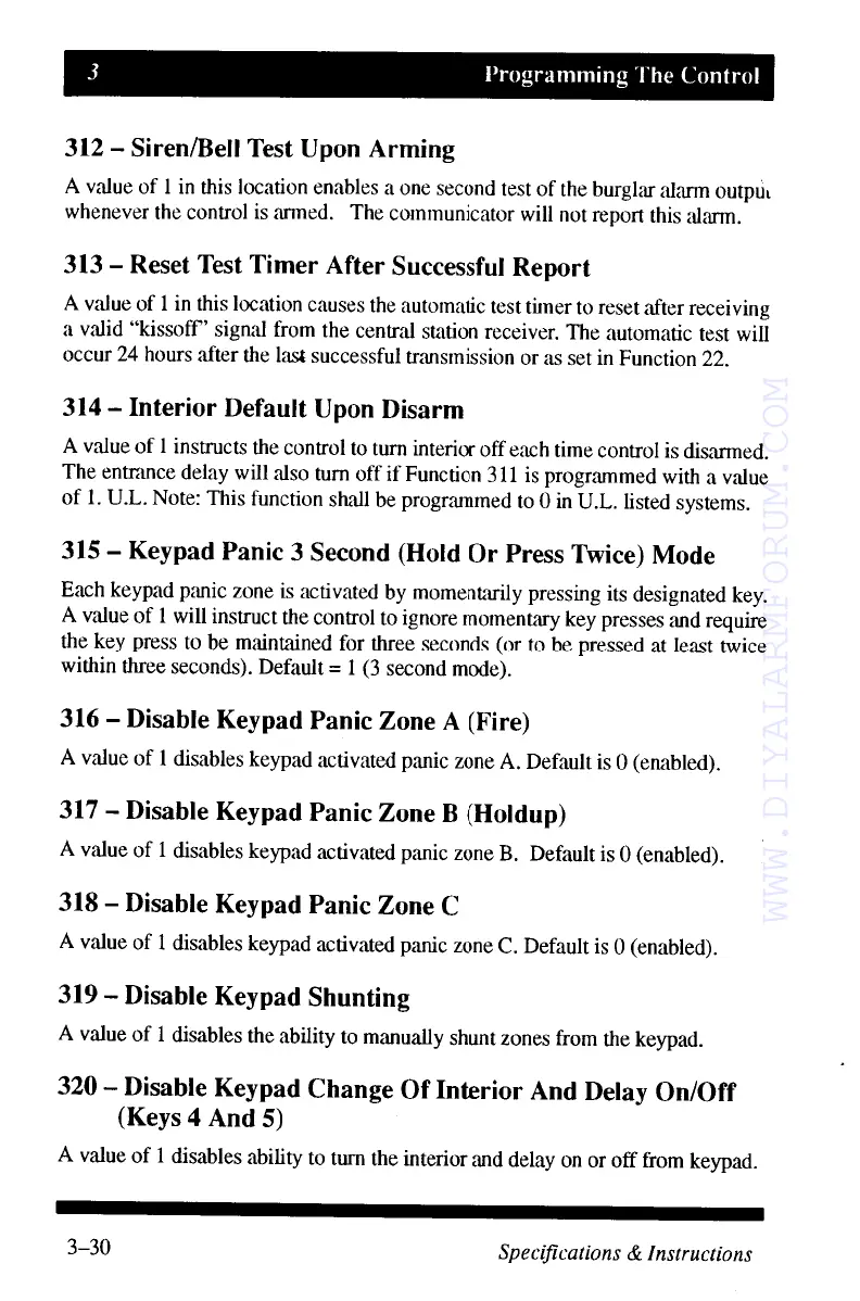 MOOSE Z800 - Programming The Control; Disabling Keypad Zone Chime and Command Features; Keypad Silent Operation and Panic Zone Settings