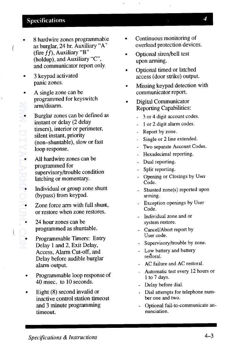 MOOSE Z800 - Specifications; Zone and Timer Configuration Options; System Monitoring, Outputs, and Reporting Capabilities