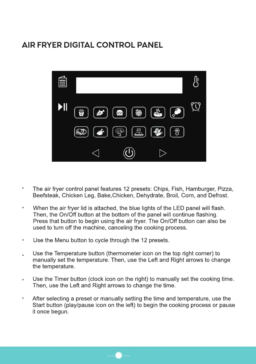 Moosoo GTAP06-A - Control Panel & Display; Air Fryer Control Panel