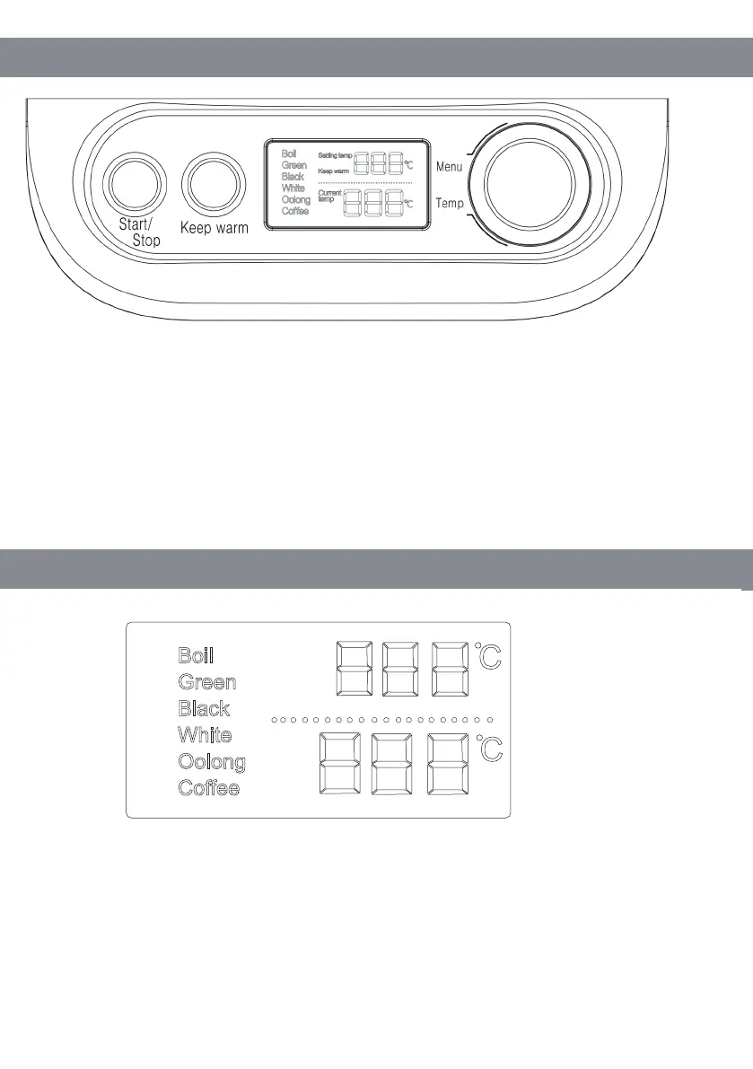 1. Menu sul lato sinistro:Boil (Bolitura acqua), Green (tè verde), Black