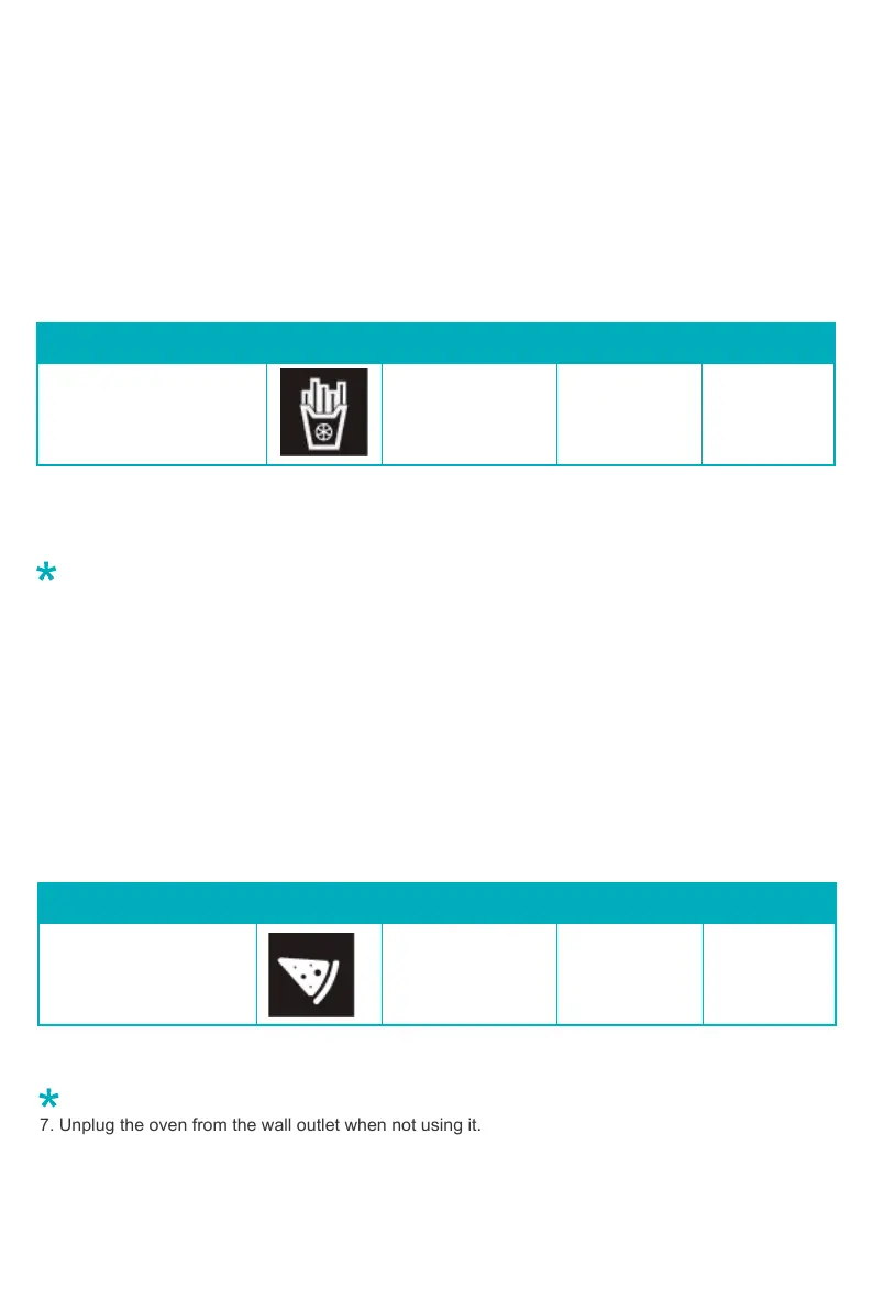 7.Unplug the oven from the wall outlet when not using it.