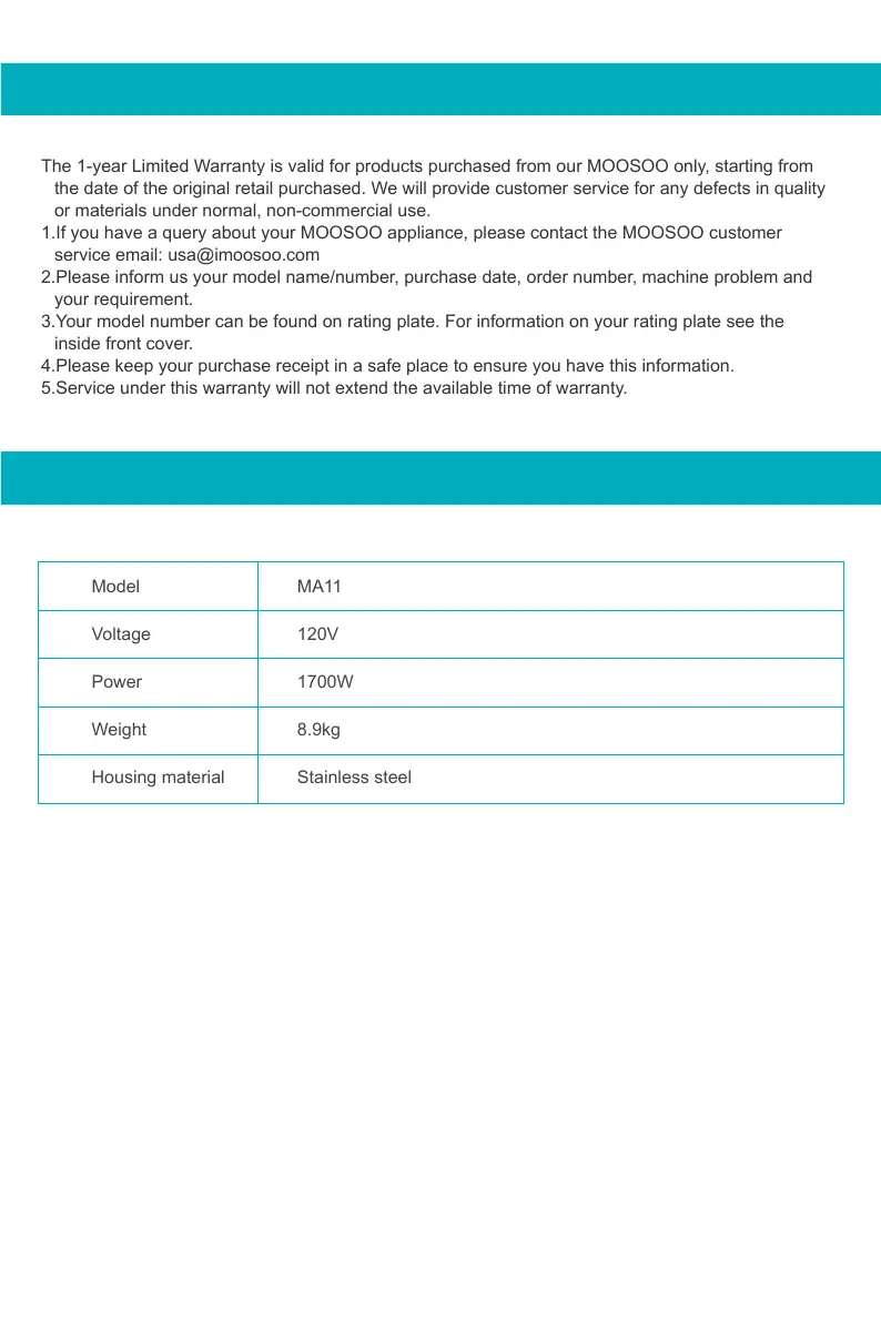 1.If you have a query about your MOOSOO appliance, please contact the MOOSOO customer
