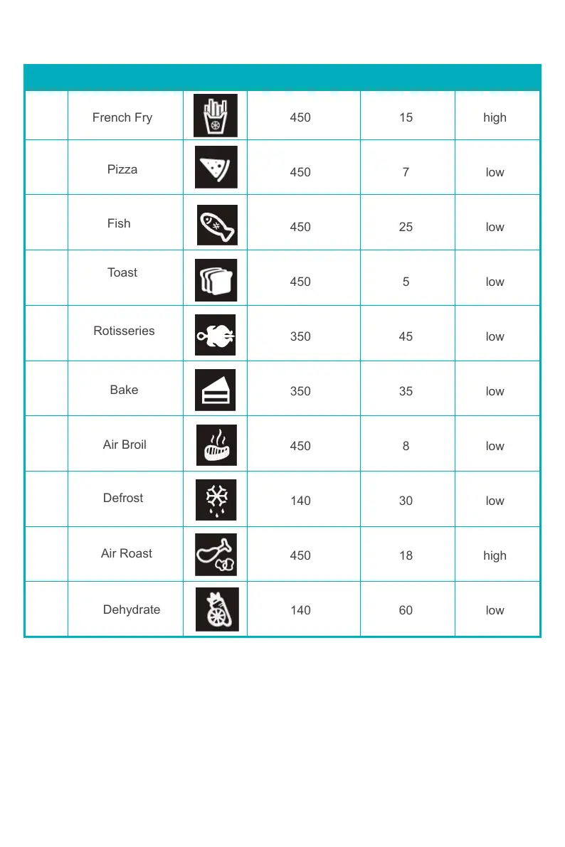 NO. Icon Time (min) Fan SpeedFunction Name Temperature ()