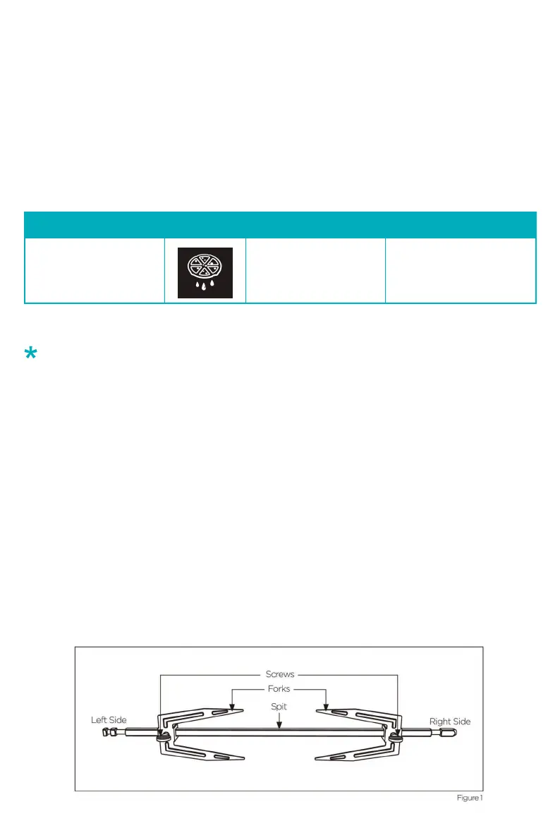 the roast on the Rotisserie Spit and tighten the Rotisserie Screws.