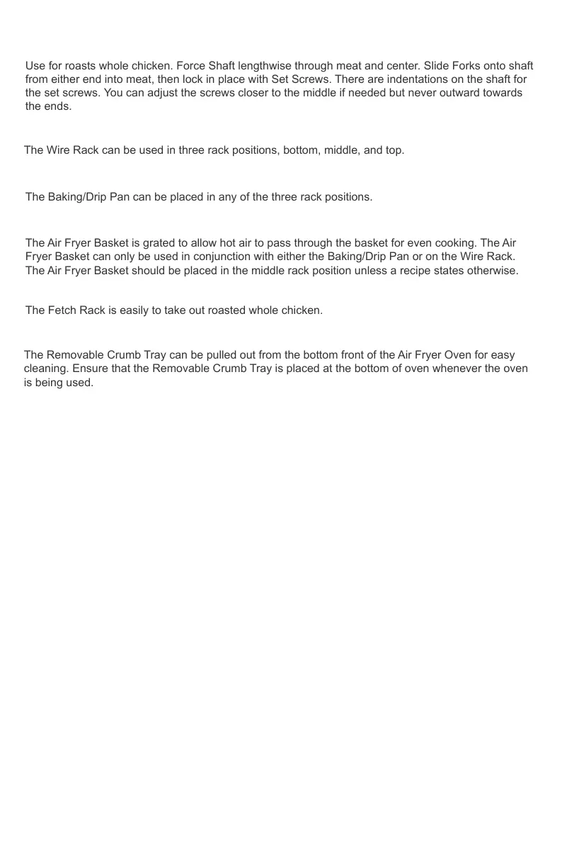 Fryer Basket can only be used in conjunction with either the Baking/Drip Pan or on the Wire Rack.
