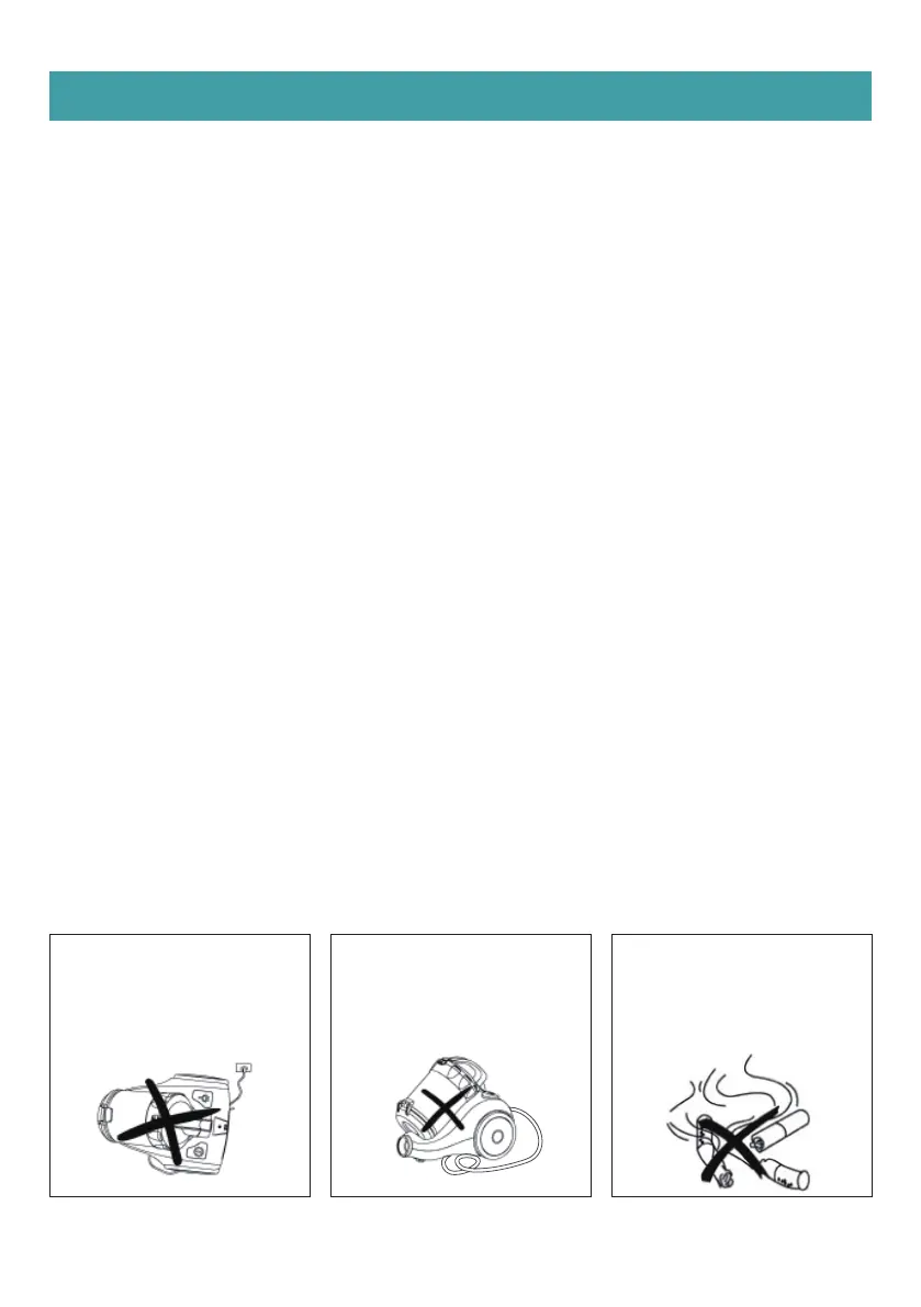 • Do not use the appliance when the dust bag/ filter is not installed in place.