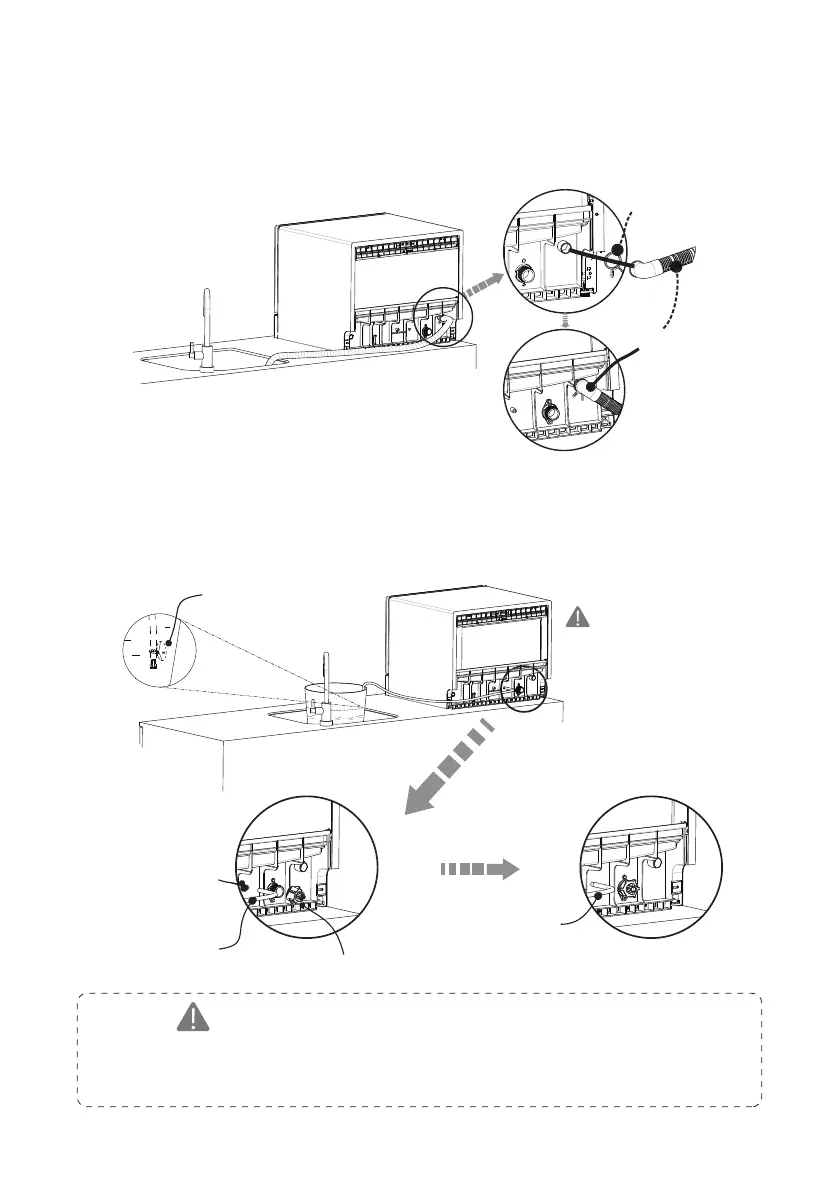 ● The drain pipe should not be hung more than 40 cm over the appliance. Doing so may cause