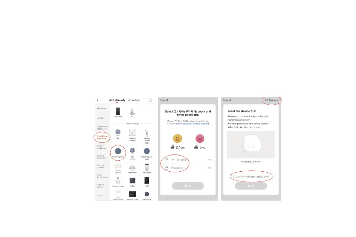 name and password, and tap Next to connect the vacuum cleaner to the Wi-Fi network. You can configure the Wi-Fi network using either of the