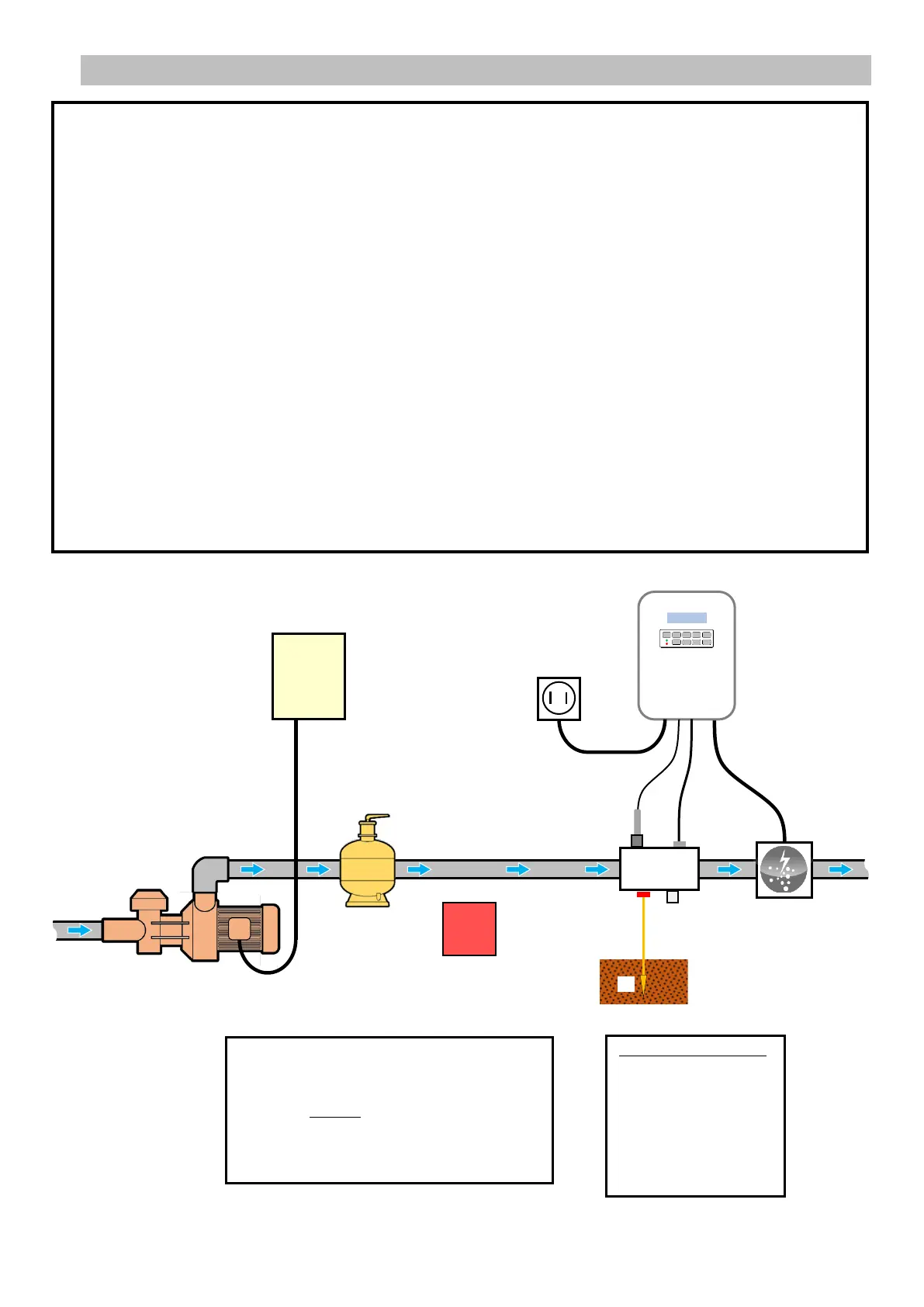 • Desconecte la bomba de filtración de la piscina antes de iniciar la instalación. El sistema debe instalarse