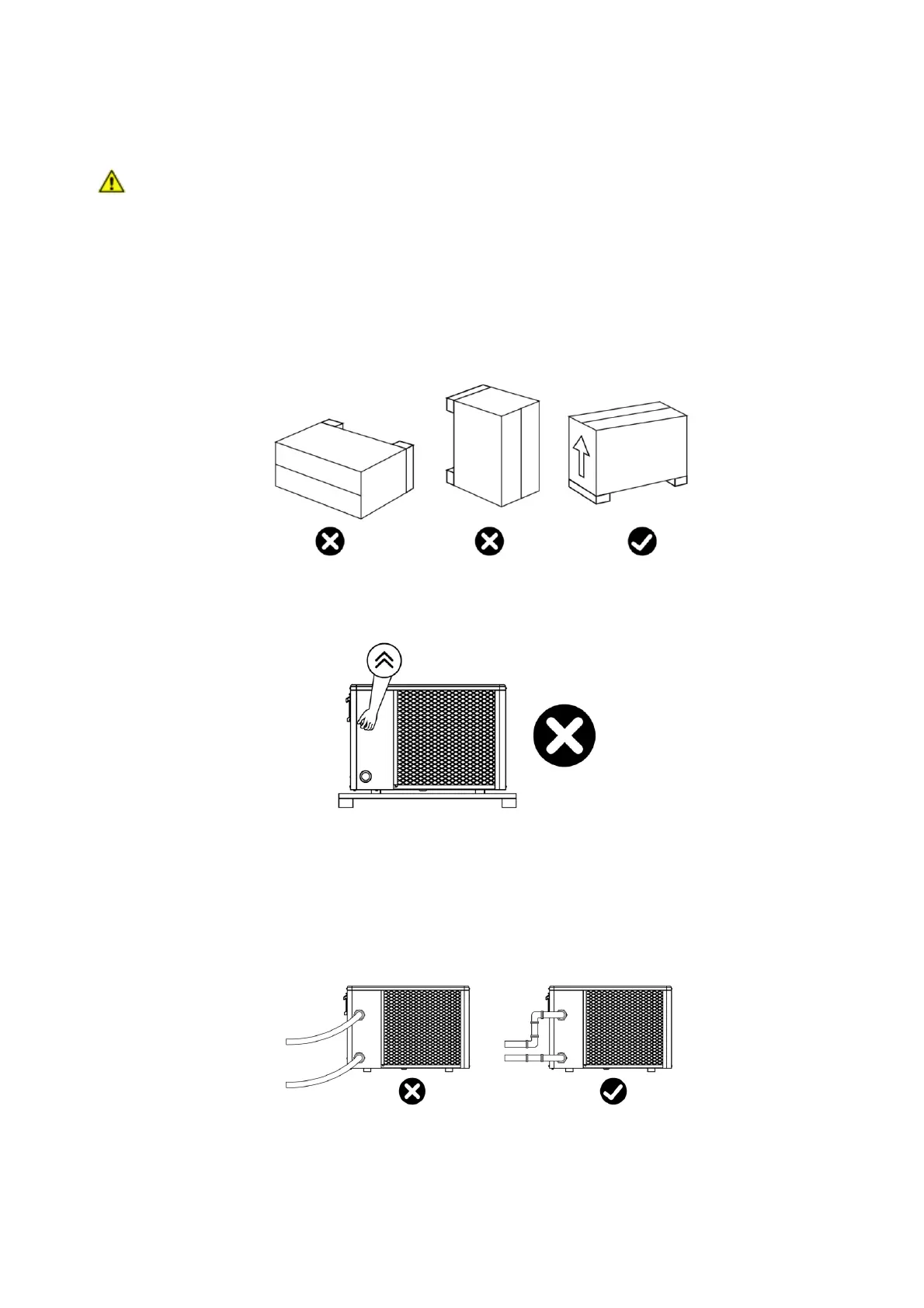1. When storing or moving the heat pump, the heat pump should be in the upright position.