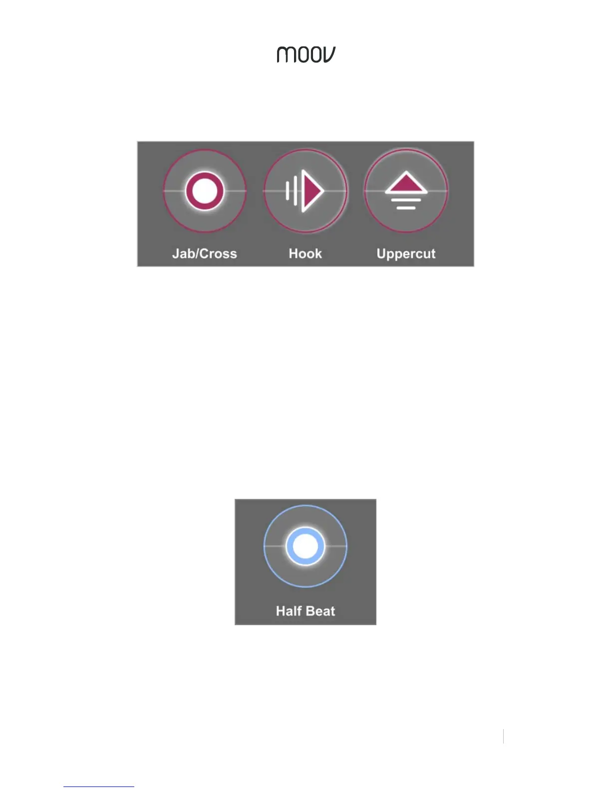 Jab, cross, hook, and uppercut are signaled within the program using the following
