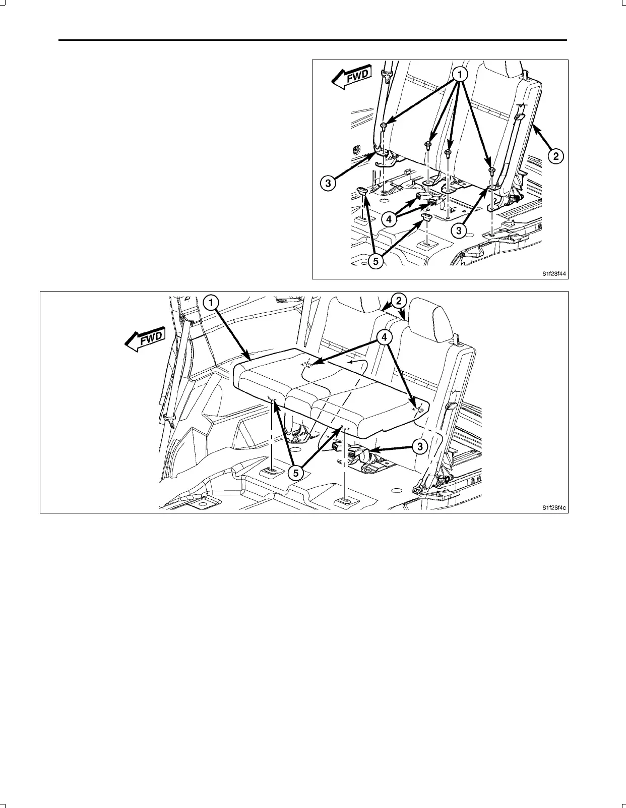100.Firmlydepressthefrontoftheseatcushiondown,ensuringthattheseatretainers(5)engage.