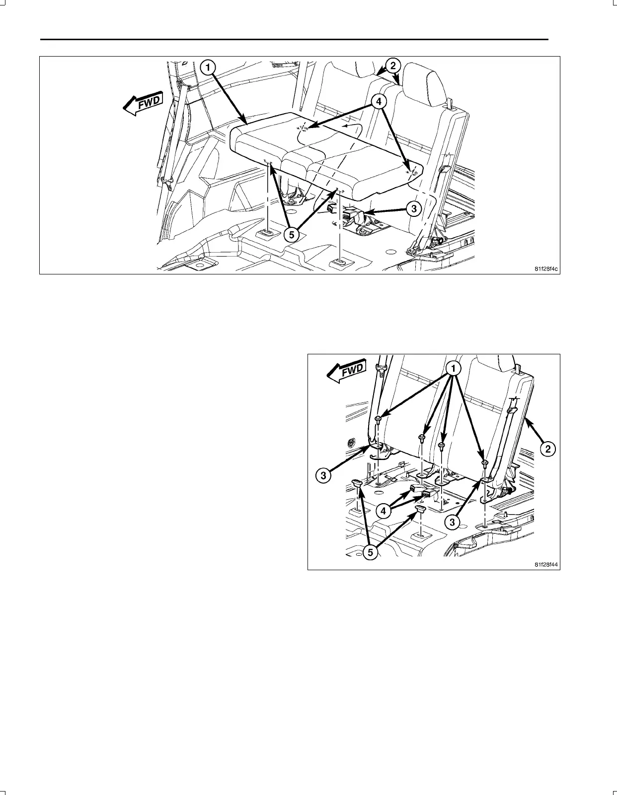 28.Enlesoulevantdescrochets(4),extrairelecoussindesiège(1)enletirantversl'avantduvéhiculeetretirerle
