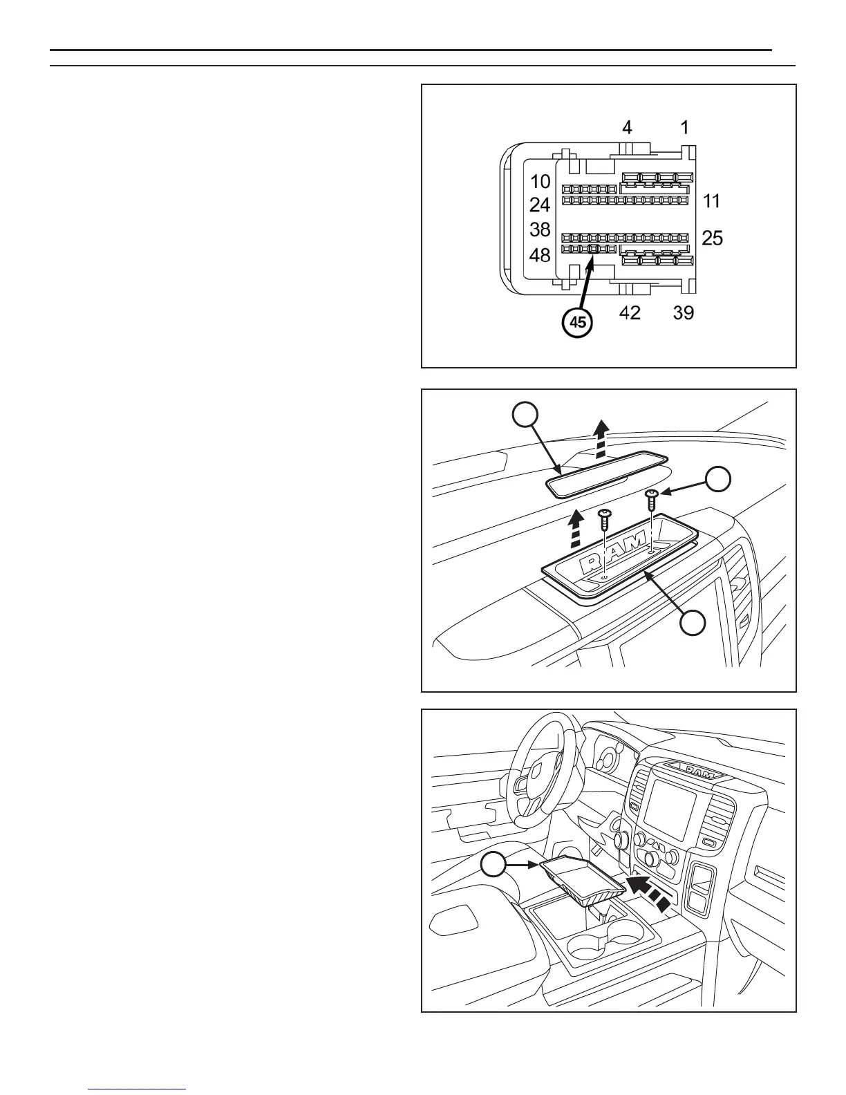 area of the dashboard. Remove fasteners (2) from the