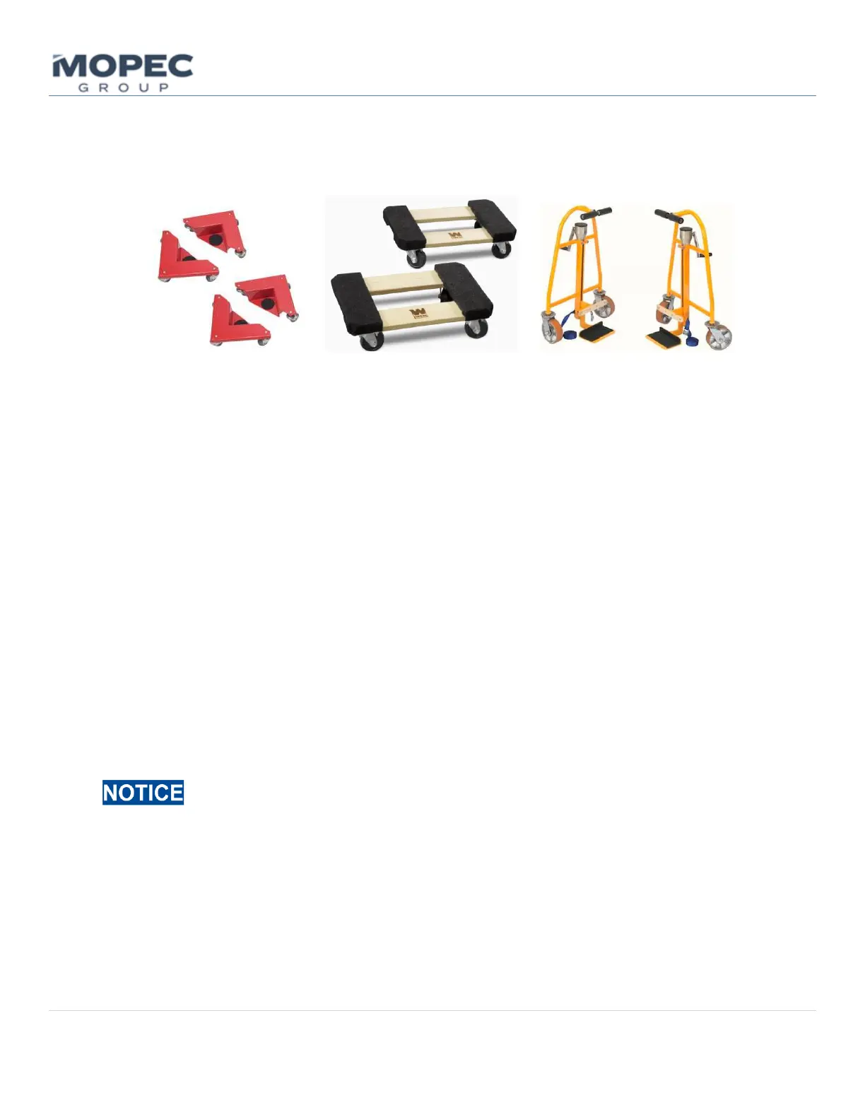 • Place the Unit on a. (4) corner dollies or b. (2) skid dollies on each end. If available, one can use c. (2) crank