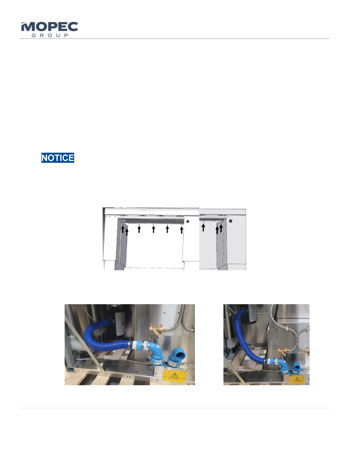 obstruction. The unit is shipped fully lowered in elevation so the flex line will appear flattened out.