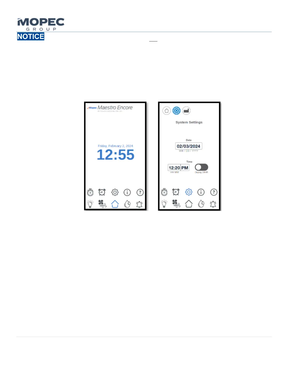will save the input. The System Setting Page will display the time which can be changed from 24-hour time