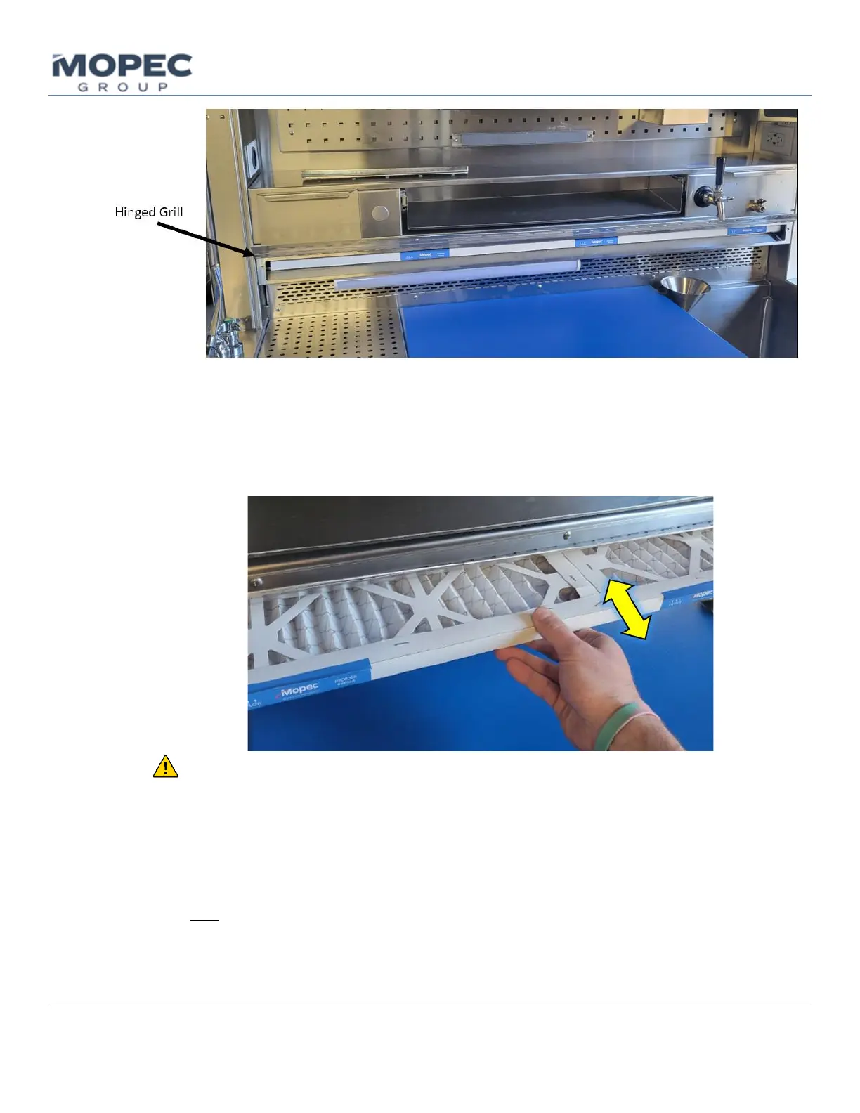 The new filter will side in and rest behind the grill. Once installed close the filter hinge and re-install the