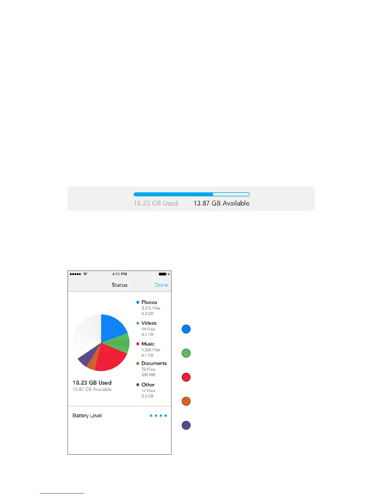 the Status screen, which presents the storage