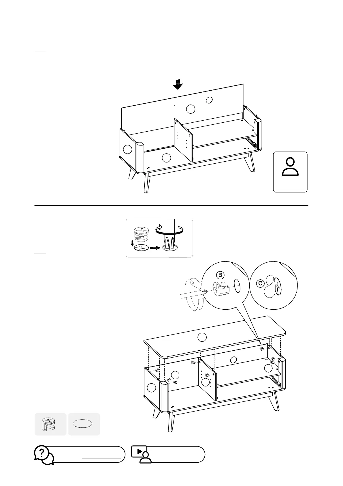 inserting camlock (B) and tightening it with a