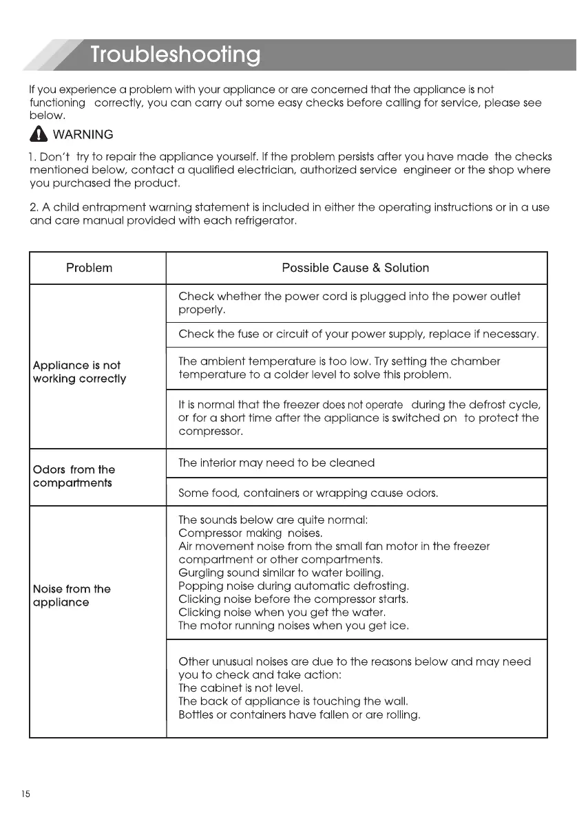 Mora MRT180N6AWD - Troubleshooting Common Issues; Appliance Not Working and Odors