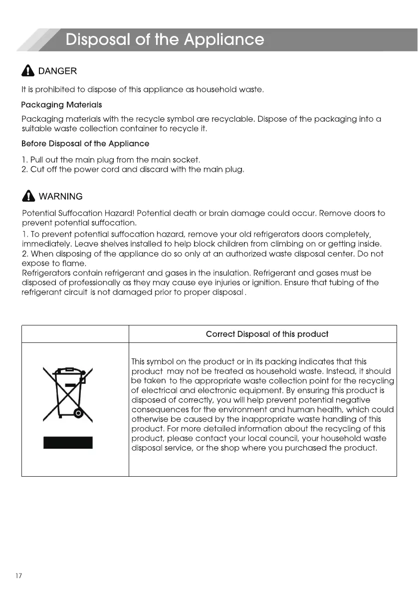 Mora MRT180N6AWD - Disposal of the Appliance; Packaging Recycling and Pre-Disposal Safety; Correct Electronic Waste Disposal