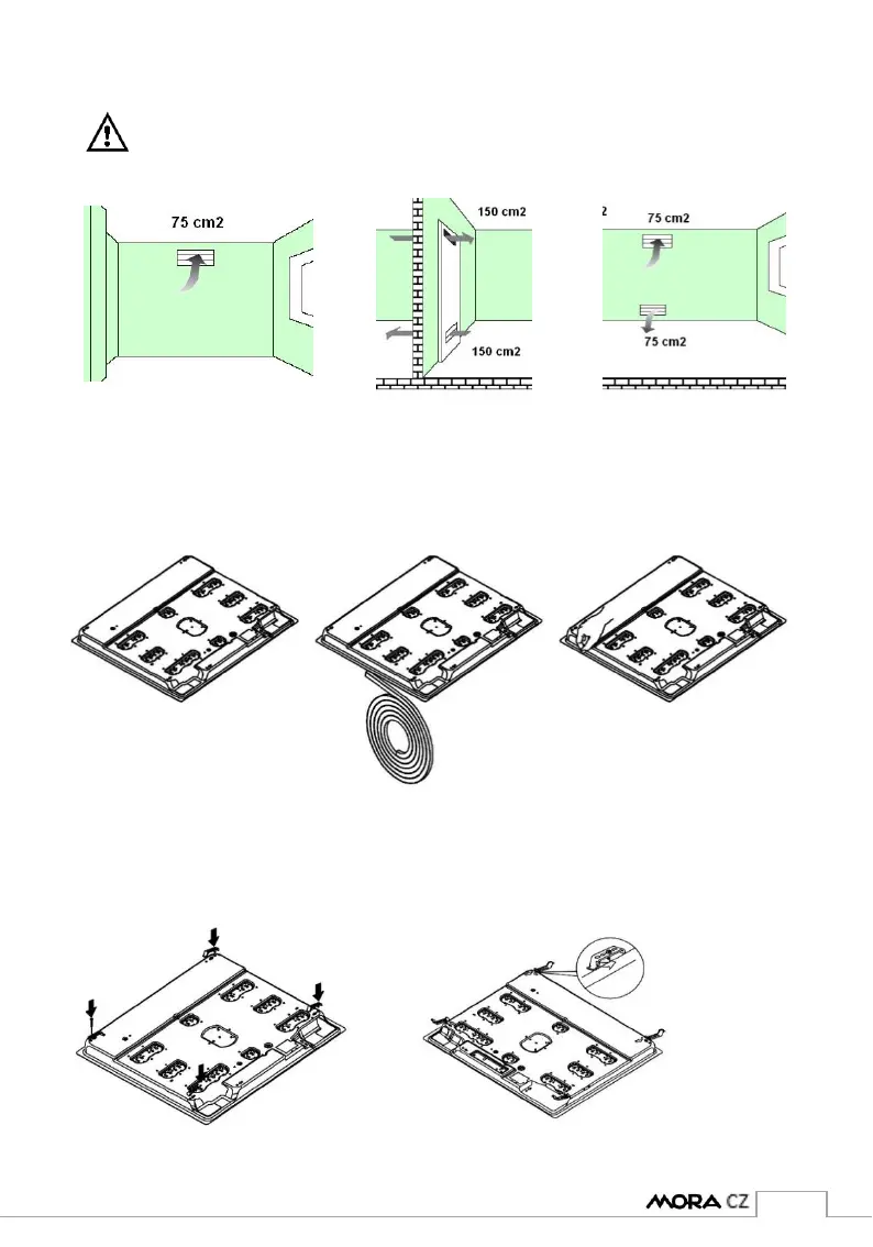 Větrání by mělo být nejméně 75 cm², v blízkosti kuchyňské podlahy