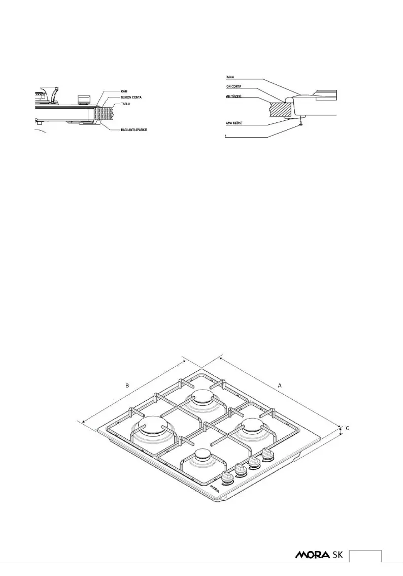 znázornené v popise 5. Umiestnite varnú dosku do otvoru na kuchynskej