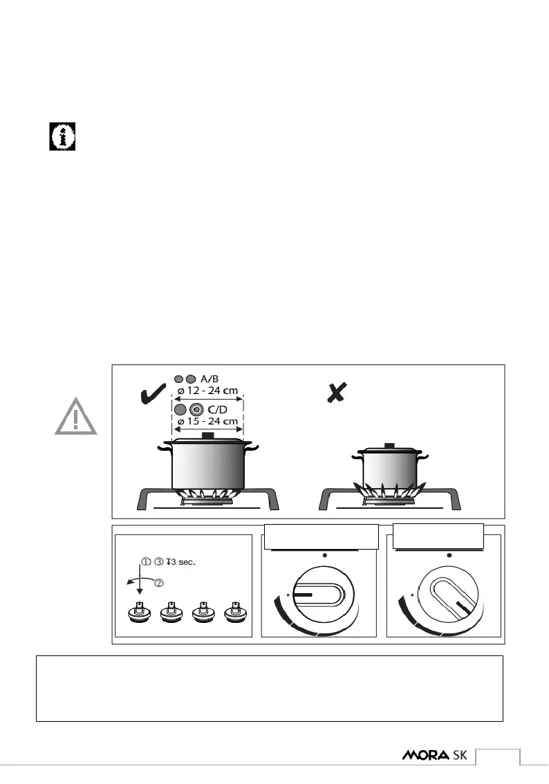Veľkosť nádoby a plameň plynu sa musí zhodovať.