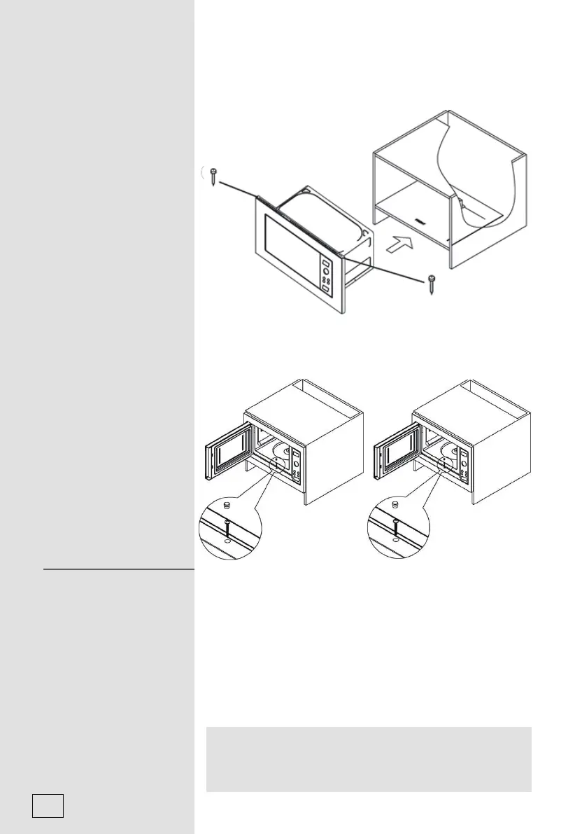 1.Vložte mikrovlnnú rúru do skrinky. Udržujte mikrovlnnú rúru