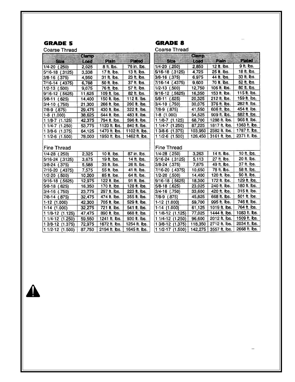 be observed when using SAE Grade 6, 7 and 8 cap screws.