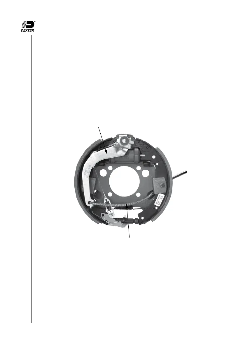 The internal parking brake lever of Dexter 12 1/4" brakes transfers the applied