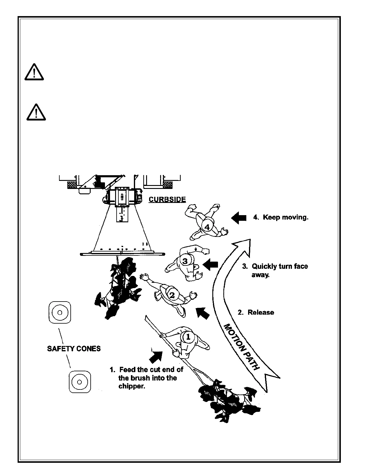 Keep the working area clear of limbs and debris. Tripping or