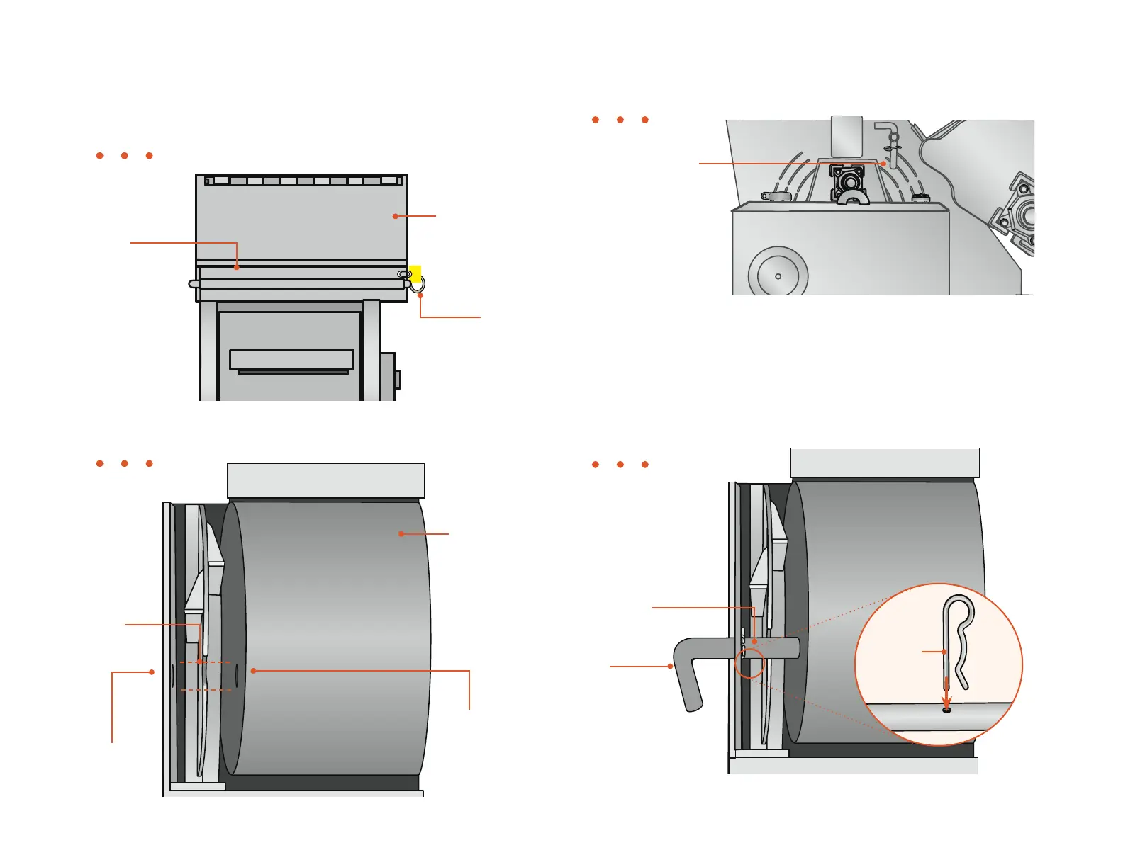 1. Remove lynch pin, slide the hood locking pin out that holds the drum