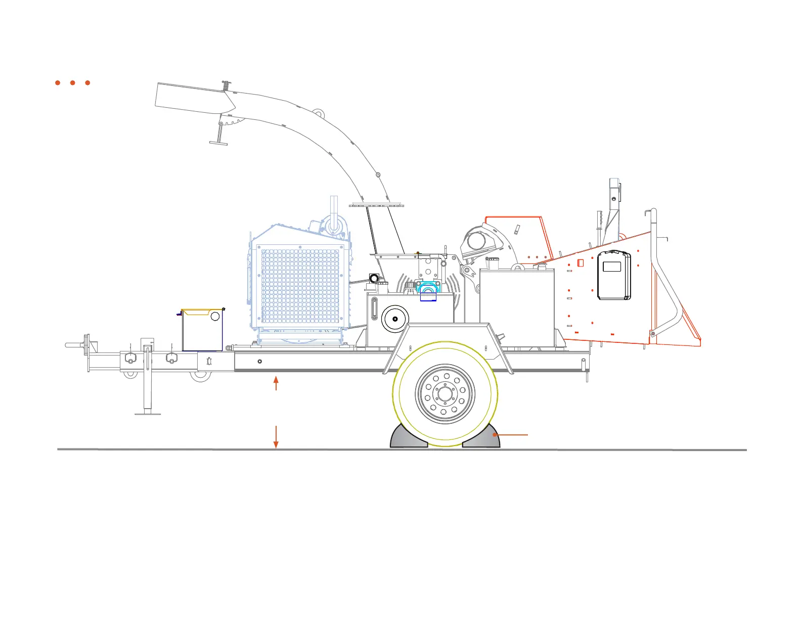 Morbark BEEVER M12RX - Hitch, Chains, and Jack