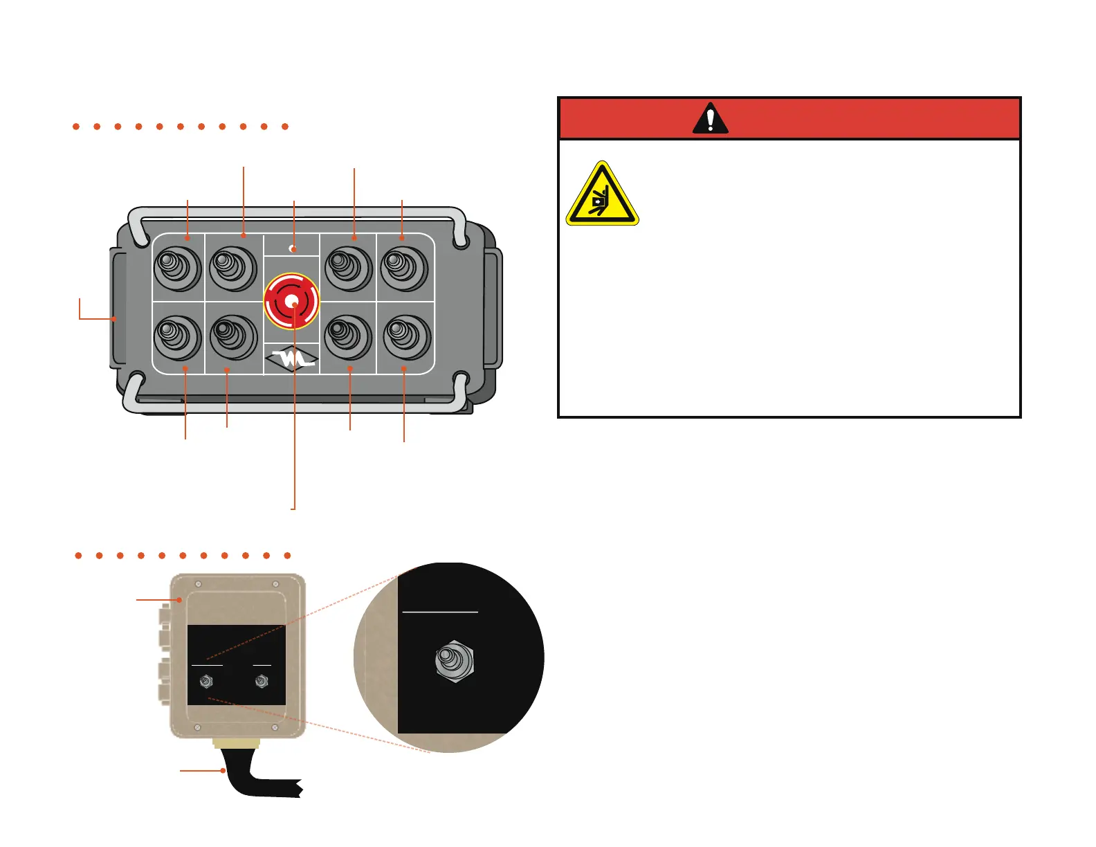 red while operating, safely stop all machine operations