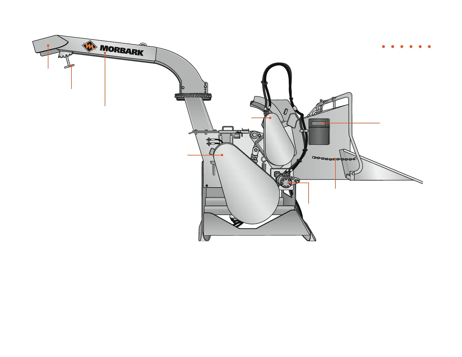 15. Discharge chute: Used to change the direction of the discharge. Capable of