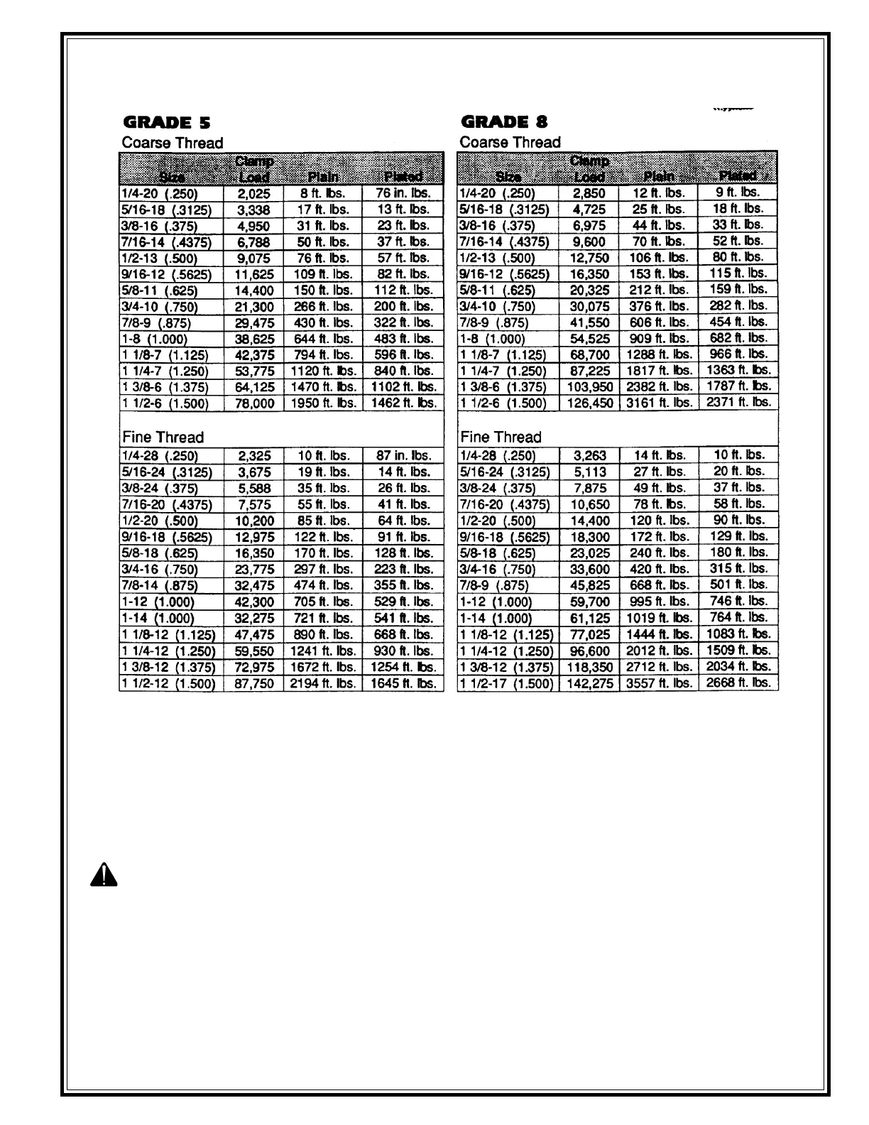 should be observed when using SAE Grade 6, 7 and 8 Capscrews.