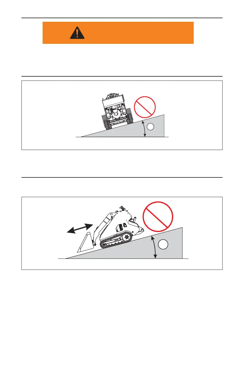 • Do not travel up or across a slope steeper than 15°. See Figure 3–23.