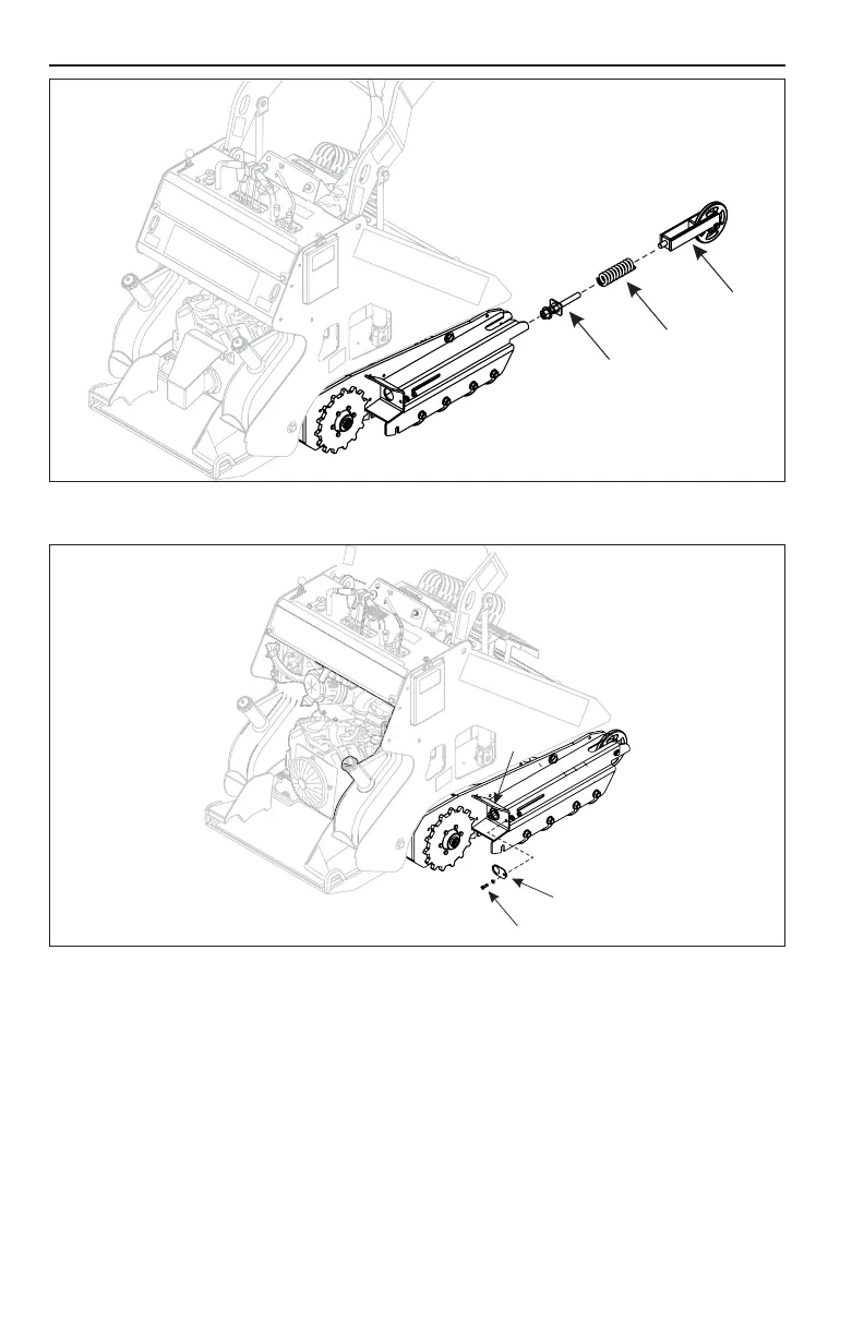 8. Remove track tension lock plate bolt (Item 1, Figure 4–28) using a 9/16” wrench