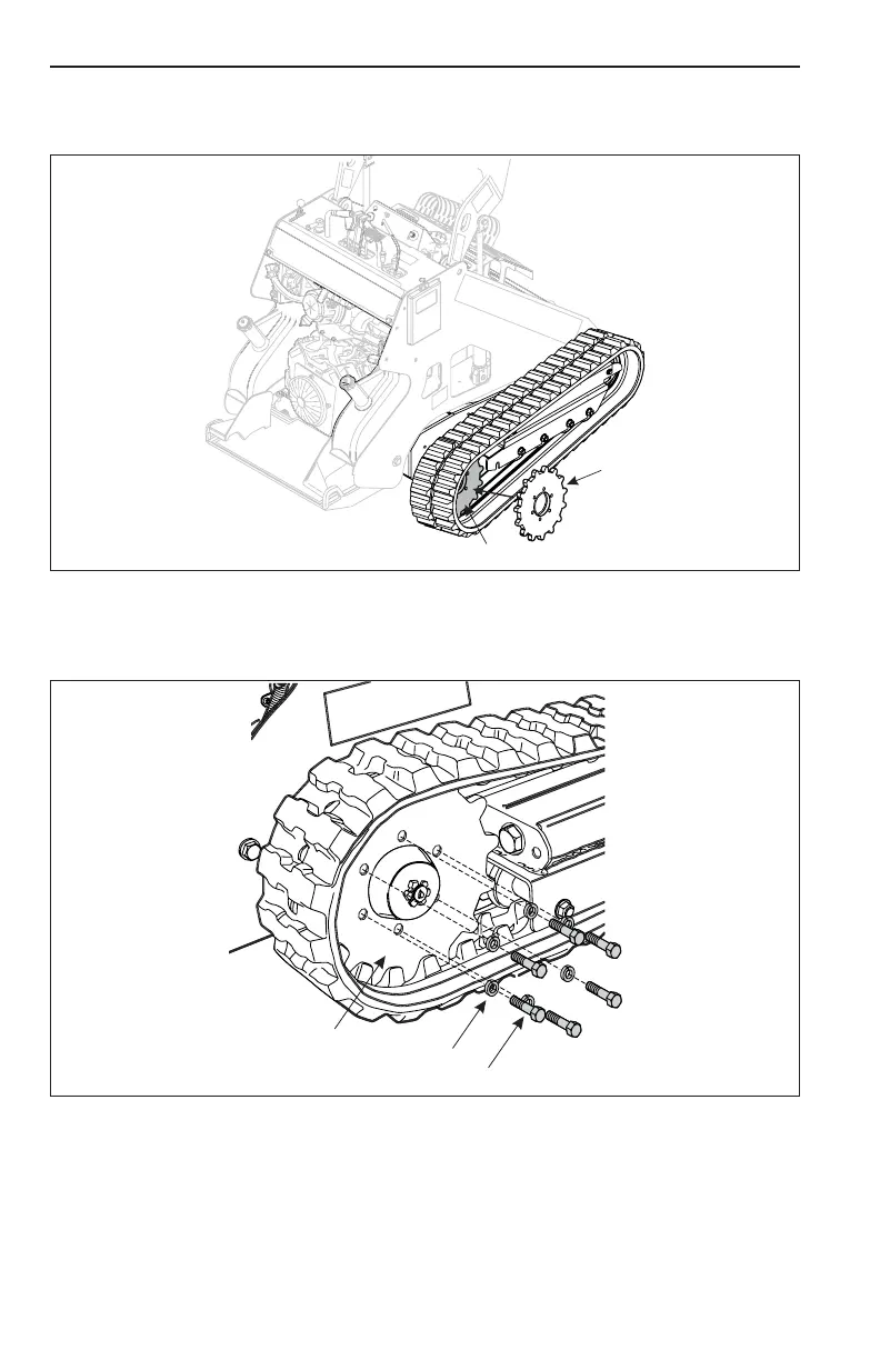 15. Rotate the drive sprocket (Item 1, Figure 4–32) and track to align the bolt holes.