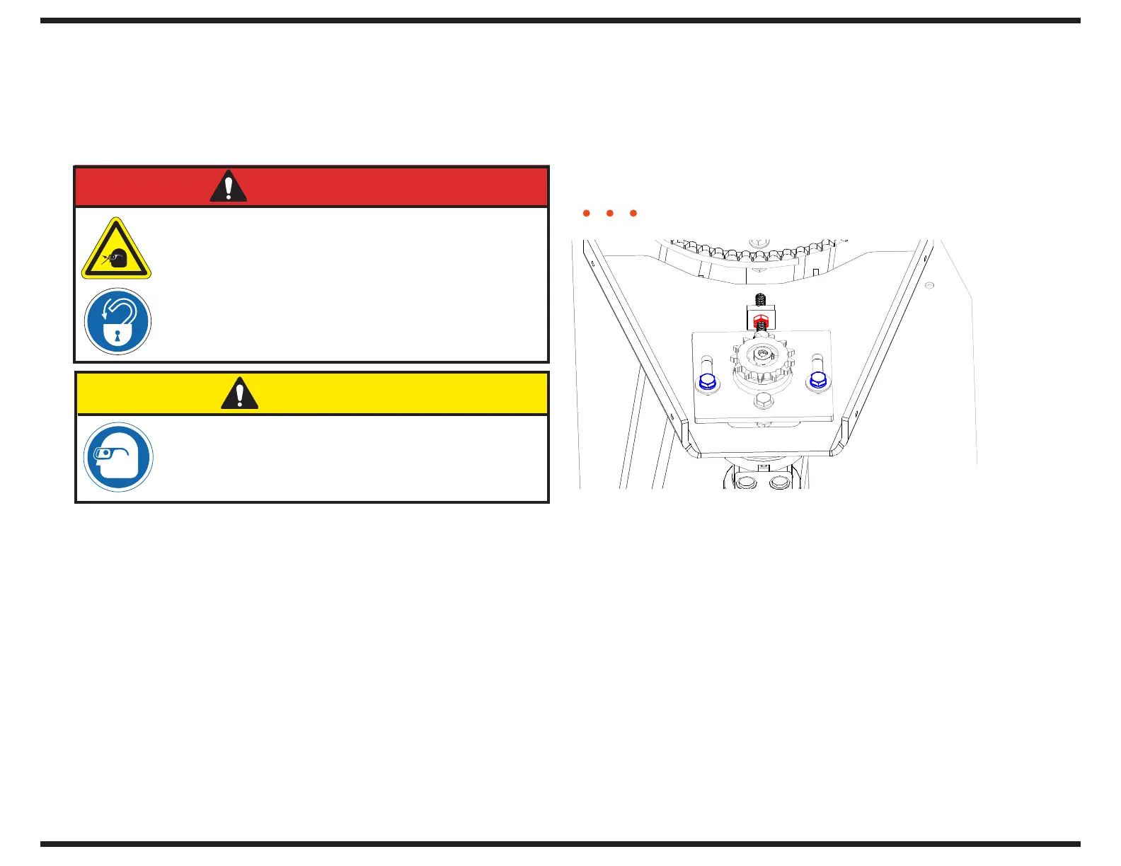 3� Loosen the 4 bolts holding the guard on chute and remove.