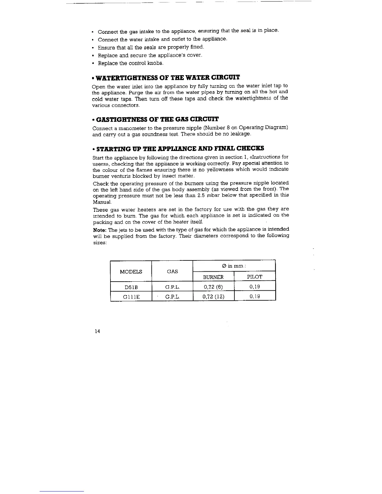 Morco D-51B - Winterizing of the Water Circuit; Starting up the Appliance and Final Checks
