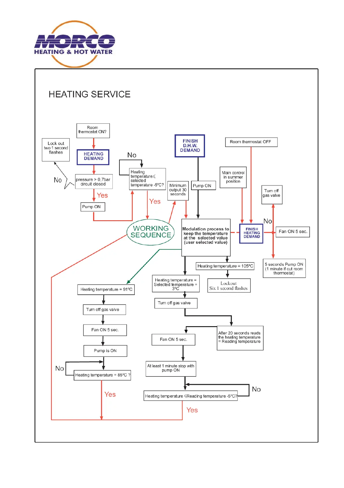 Morco FEB-24E - Central Heating (CH) Service Flow; CH Demand and Thermostat Checks; CH Temperature Control and Modulation; High Temperature Lockout in CH Mode