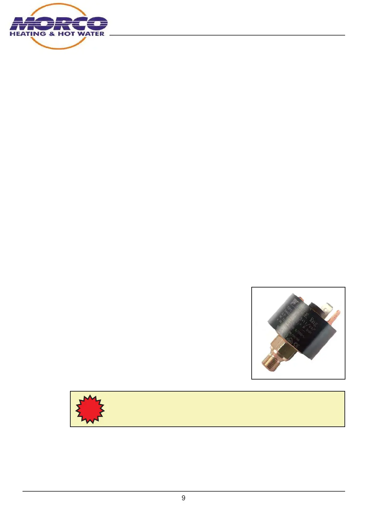 Central heating low pressure switch: (Part number FCB1480)