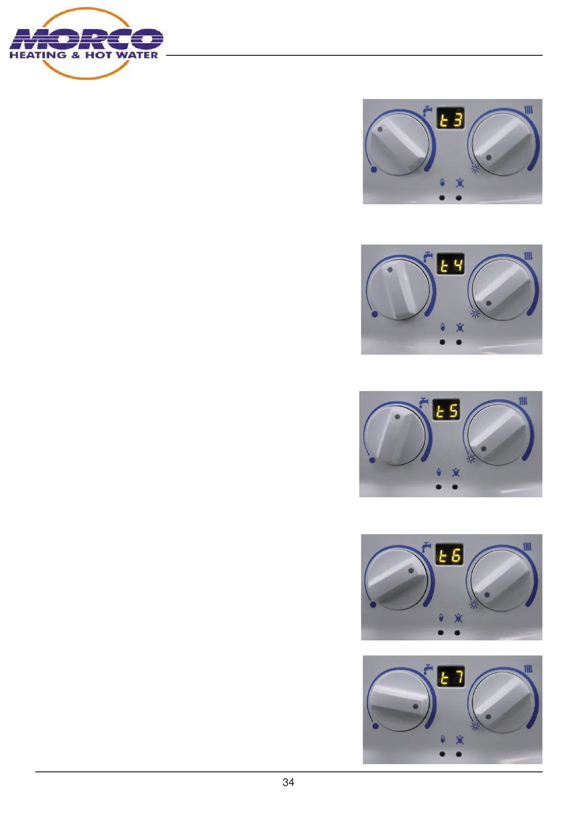 DHW temperature to 42ºC. Display shows t6. No