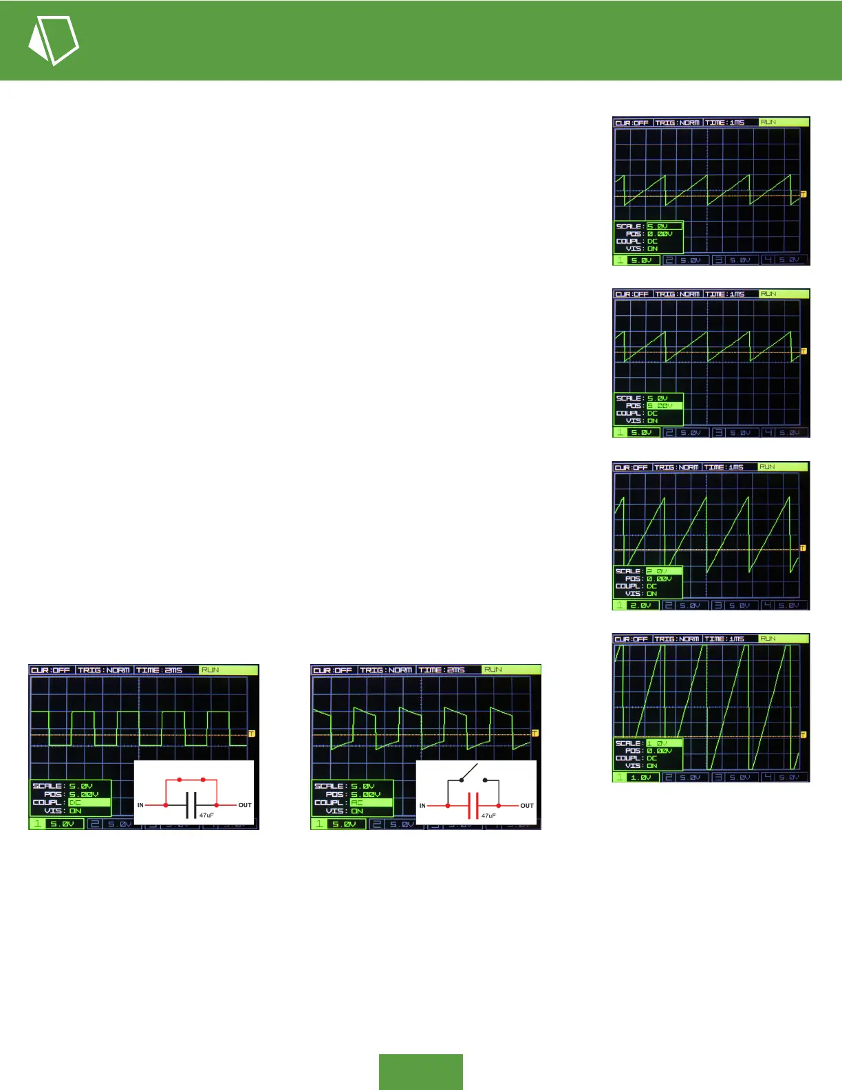 input, it will show 0V on the scope, as that 5V DC has been blocked. Similarly, the at components of a sqaure wave will appear