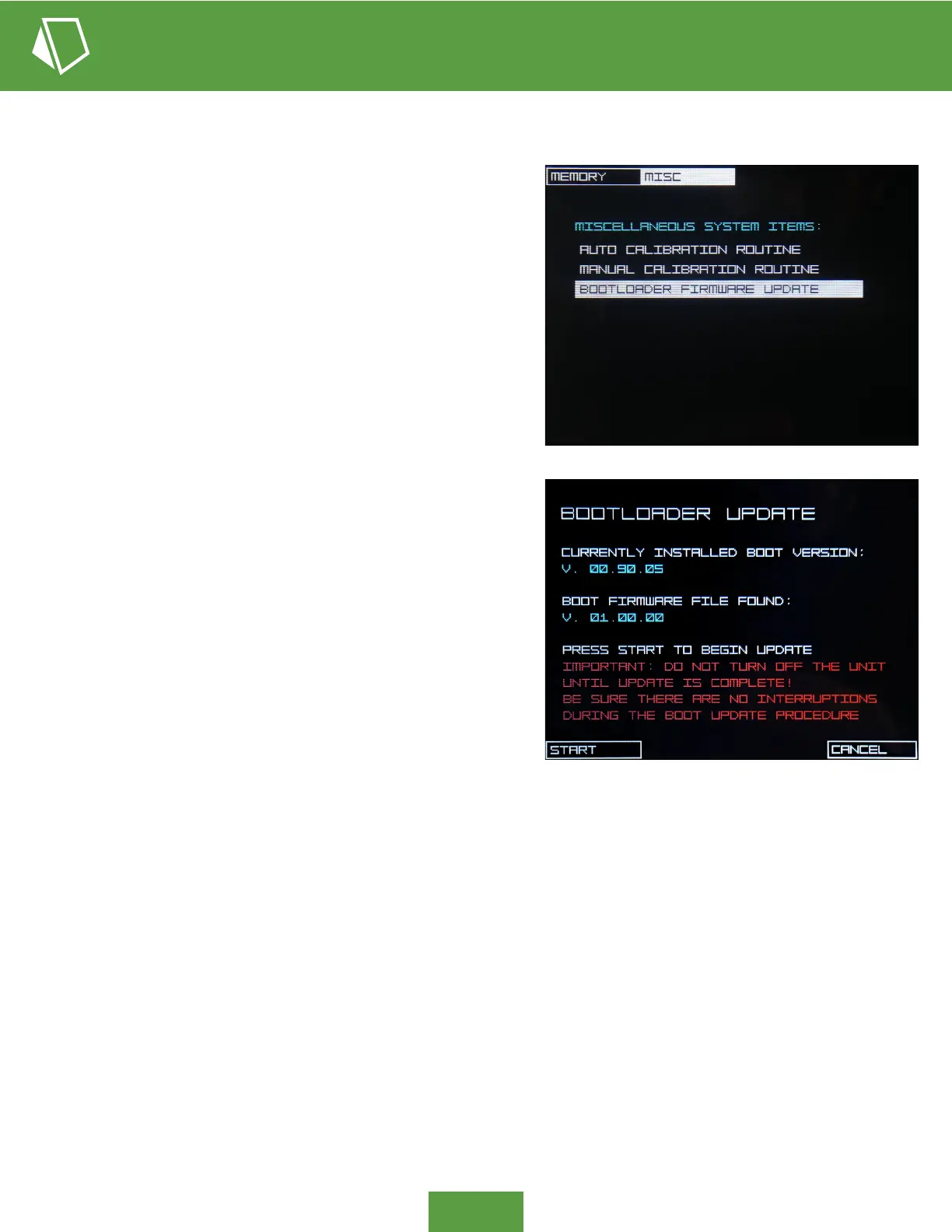 with the rotary encoder knob to select ‘Bootloader Firmware Update’