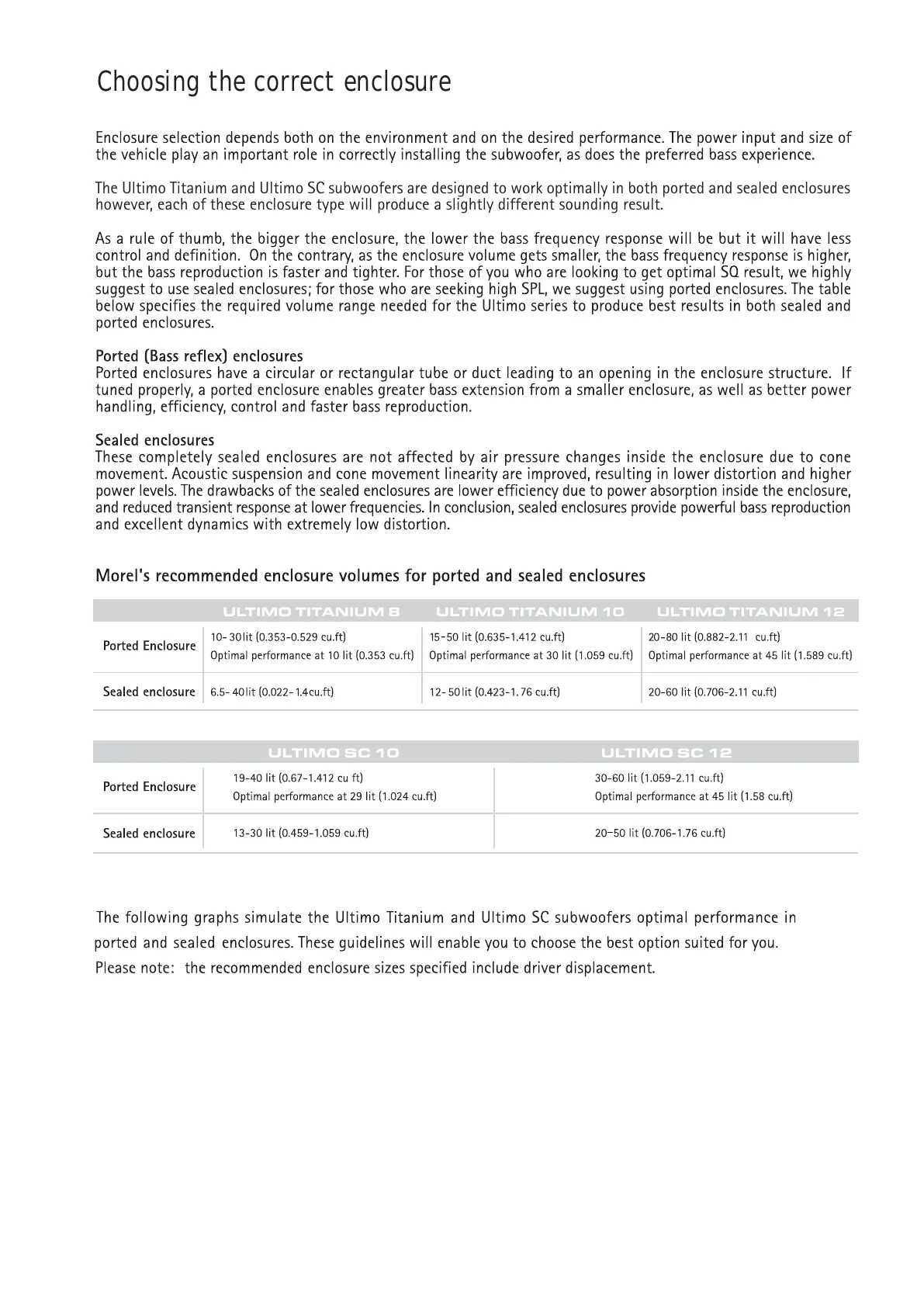Morel ULTIMO Series - Choosing the Correct Enclosure; Ported Enclosure Explanation; Sealed Enclosure Explanation