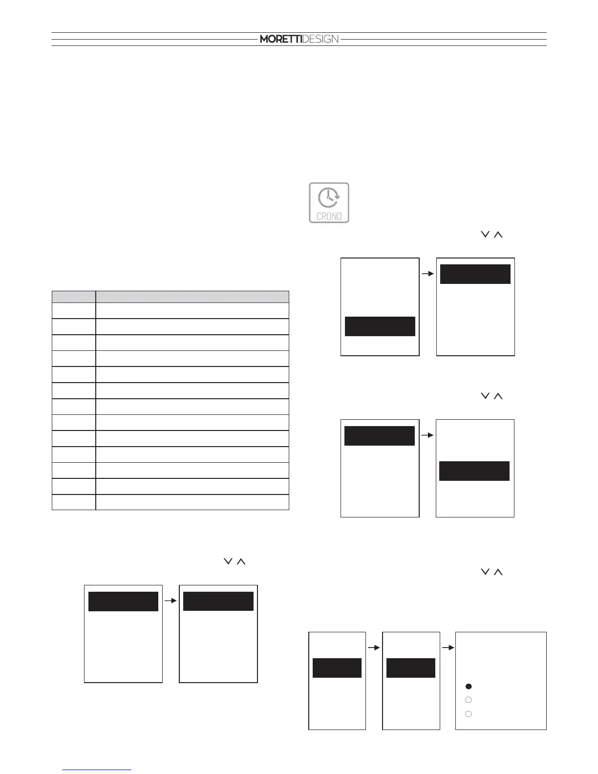 Chrono Program: Select a desired program for setting (after